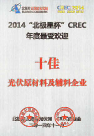 2014“北極星杯”CREC年度最受歡迎十佳光伏原材料及輔料企業獎牌