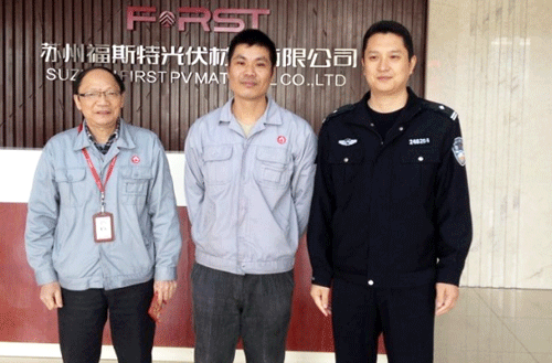 日前,辛莊鎮派出所和蘇州電視臺社會傳真欄目還專程來到公司對王濤同志的先進事跡進行了表彰和采訪。面對各方贊譽,王濤表示:“我只是做了我認為正確的事,今后再遇到這樣的事我依然會去做”。
