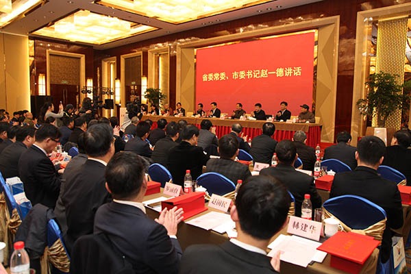 1月16日,在市“三會(huì)”2015年度會(huì)員大會(huì)上,浙江省委常委、市委書記趙一德、省“三會(huì)”會(huì)長(zhǎng)張蔚文等市領(lǐng)導(dǎo)為優(yōu)秀企業(yè)家表彰頒獎(jiǎng)。