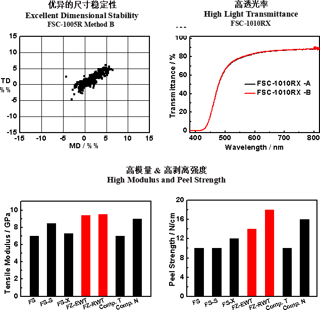 福斯特?zé)o膠型單面板,采用自主研發(fā)的熱固性聚酰亞胺、熱塑性聚酰亞胺作為絕緣材料,在銅箔上經(jīng)過涂布、亞胺化等工序生產(chǎn)得到。產(chǎn)品具有高剝離強(qiáng)度和高拉伸強(qiáng)度,優(yōu)異的尺寸穩(wěn)定性和良好的耐熱性,可用于制造高性能單面板和多層板。根據(jù)客戶端不同的應(yīng)用需求與應(yīng)用場景,設(shè)計了具有不同特性的產(chǎn)品系列。